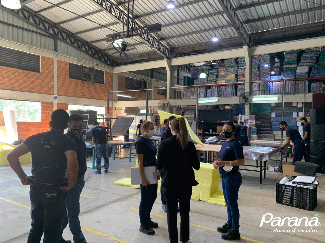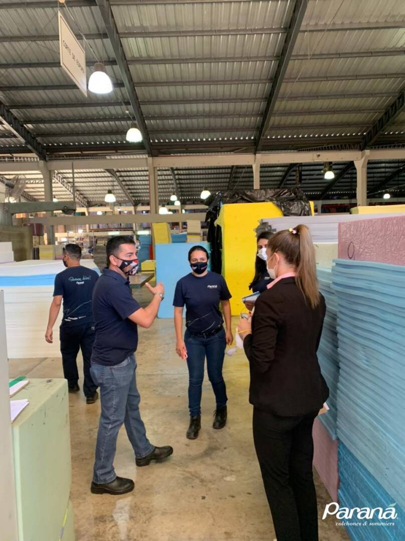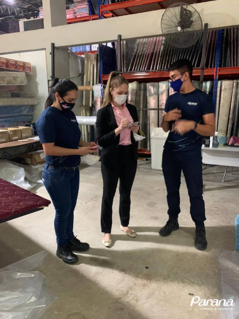 La ministra de Trabajo, Empleo y Seguridad Social (Mtess), Carla Bacigalupo, encabezó una comitiva para verificar el cumplimento de la aplicación de normas sanitarias en el local de una empresa de fabricación de colchones en la capital del departamento de Itapúa.