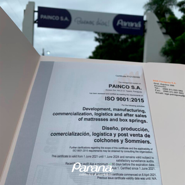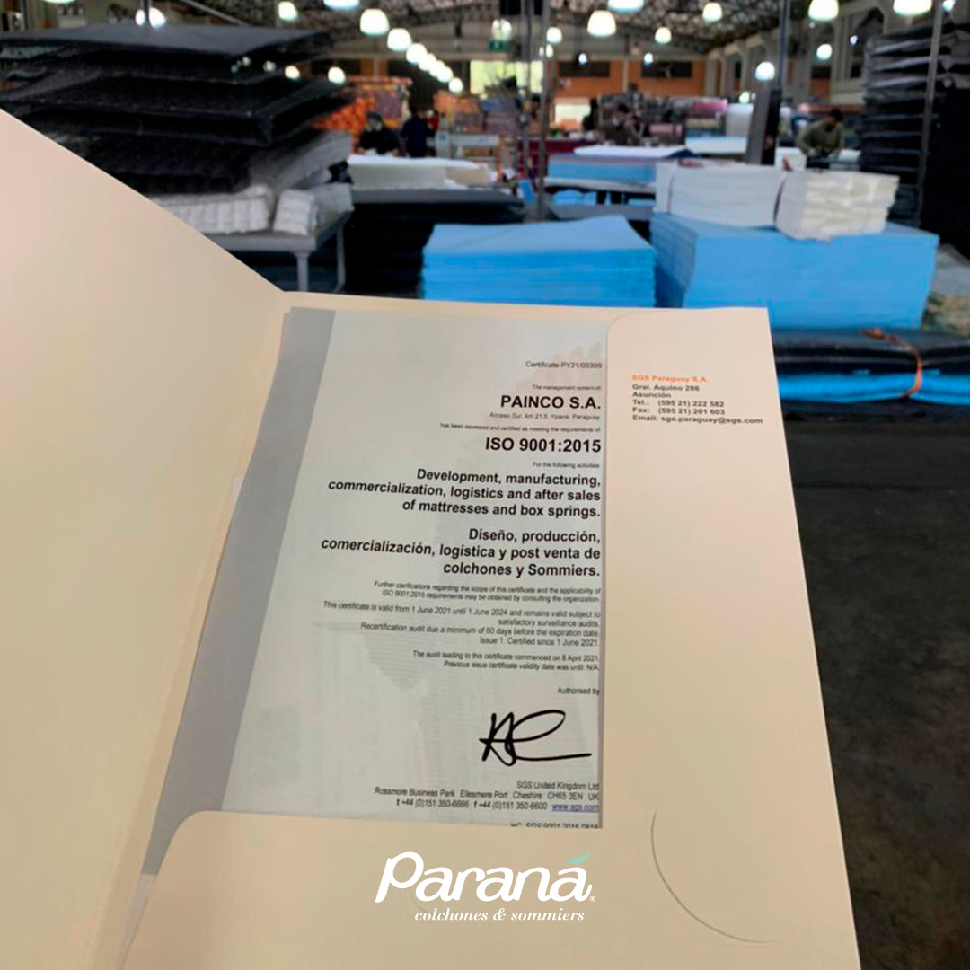 Paraná colchones & sommiers ha logrado con éxito la certificación del Sistema de Gestión de calidad bajo la norma ISO 9001:2015.